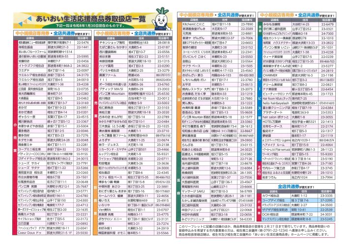 あいおい生活応援商品券取扱店一覧 令和8年3月9日(月)~5月30日(日)まで使用できる「あいおい生活応援商品券」取扱店一覧は下記をご覧ください。 ★あいおい生活応援商品券取扱店(1月30日時点)は こちら